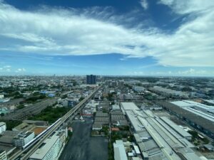 – Just 0 meters from Samrong BTS station is the Interchange station. The intersection between the Green Line and the Yellow Line. (Ladprao – Samrong) that is under construction. Getting in and out of the city easily, only 17 minutes to Asoke station already